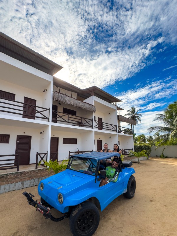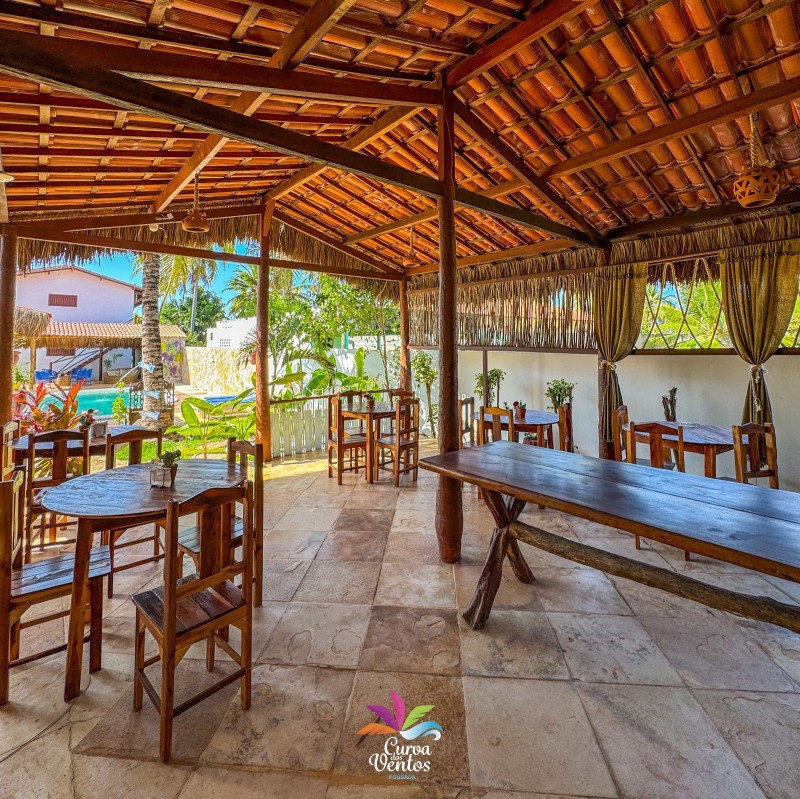 Our facilities include 22 cozy accommodations, a swimming pool with sun loungers, a garden with an orchard, a children's playground, hammocks on the deck, an outdoor living area, rotating parking, and a pleasant breakfast area. The reception is open daily from 8:00 am to 10:00 pm, with a staff ready to welcome you with attention and warmth. Whether you're traveling with family, friends, or as a couple, Curva dos Ventos offers the ideal setting to relax and enjoy the best of Icaraizinho.